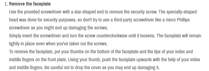This example from Ring is the first significant step in the procedure to change a video doorbell’s battery: